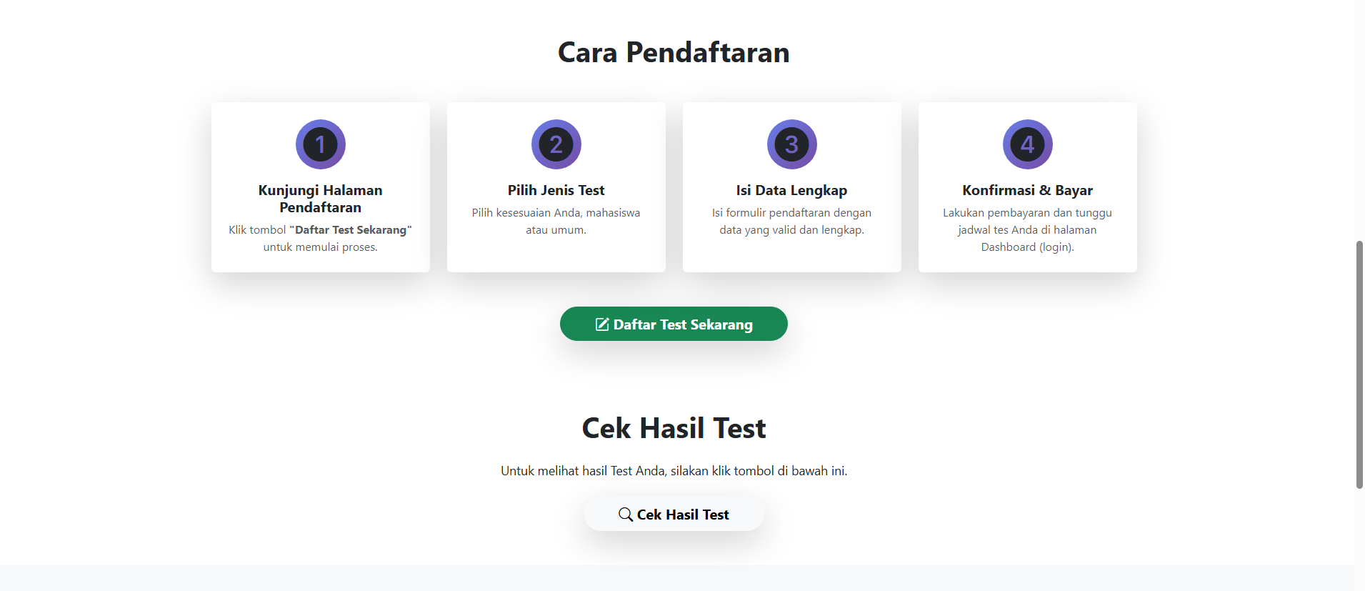 Status Pendaftaran, Jadwal, dan Hasil Test